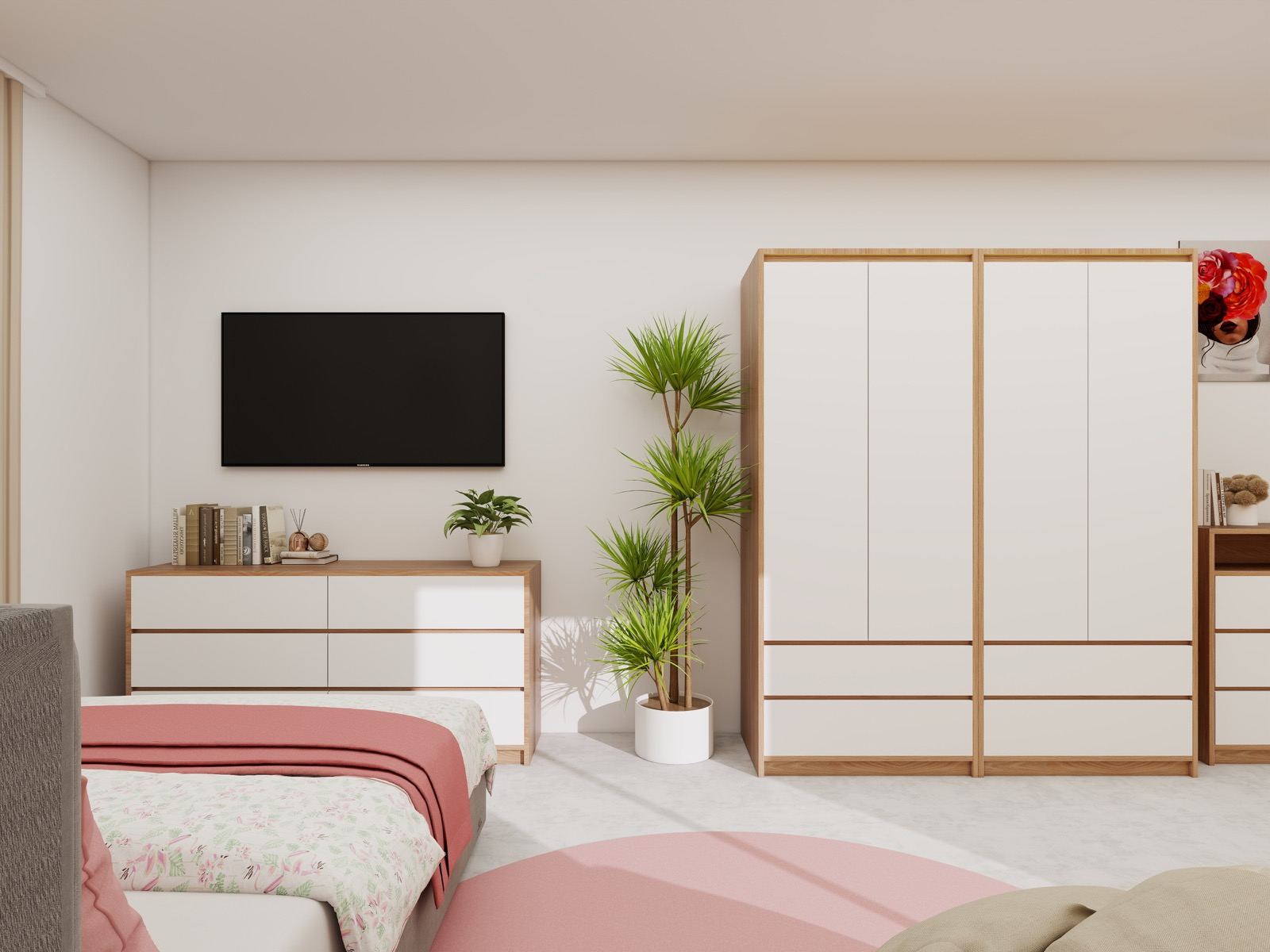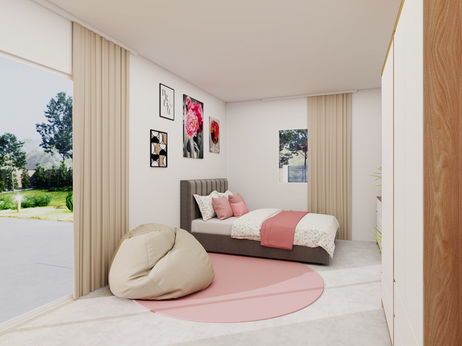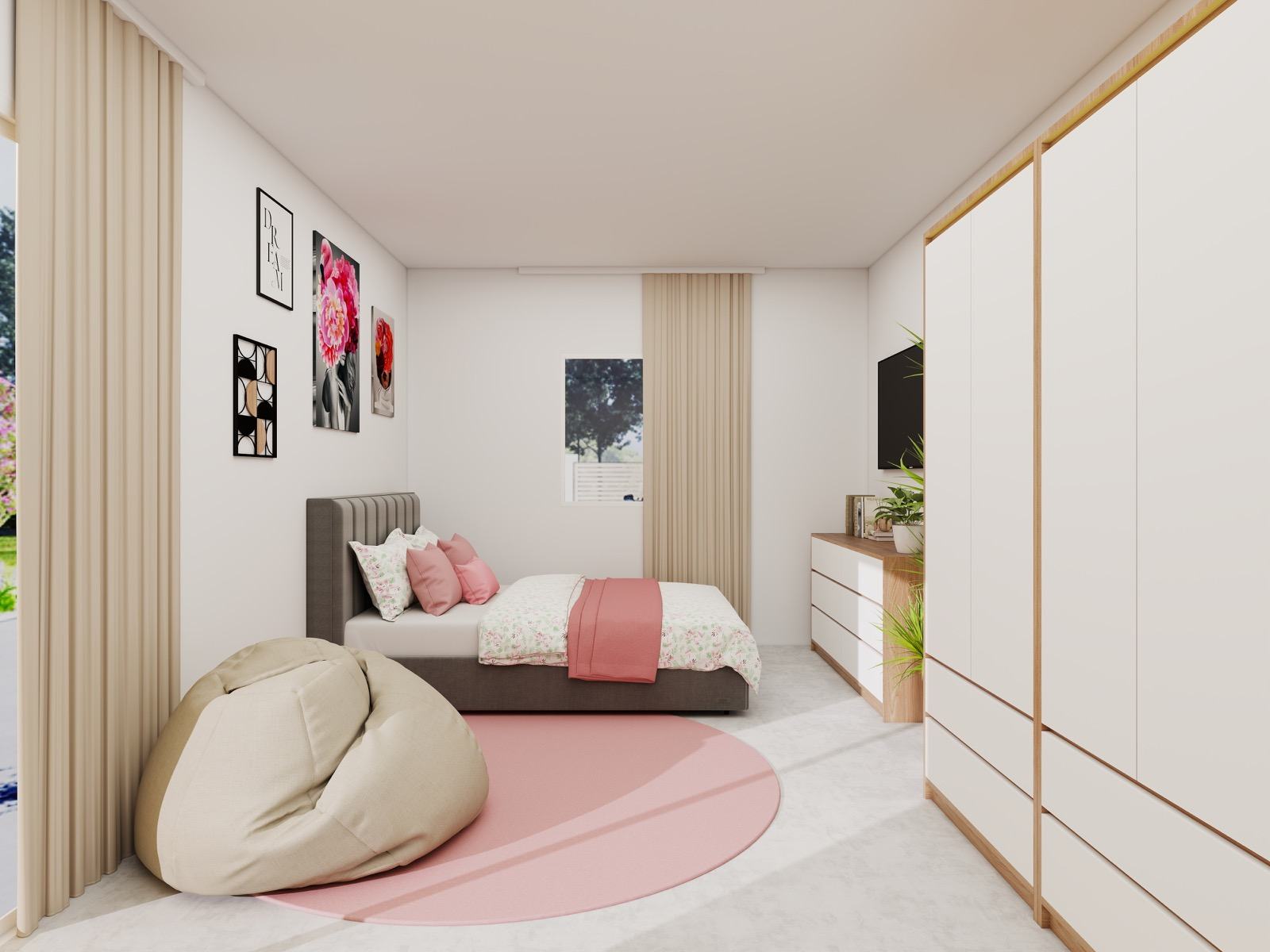 Hosekra Modular mladinska soba BLOSSOM je zasnovana kot svetel, prijeten in harmoničen prostor, ki spodbuja občutek varnosti, ustvarjalnosti in dobrega počutja. Mehki rožnati in bež odtenki ustvarjajo nežno barvno kuliso, ki deluje umirjeno, a hkrati sodobno in igrivo.