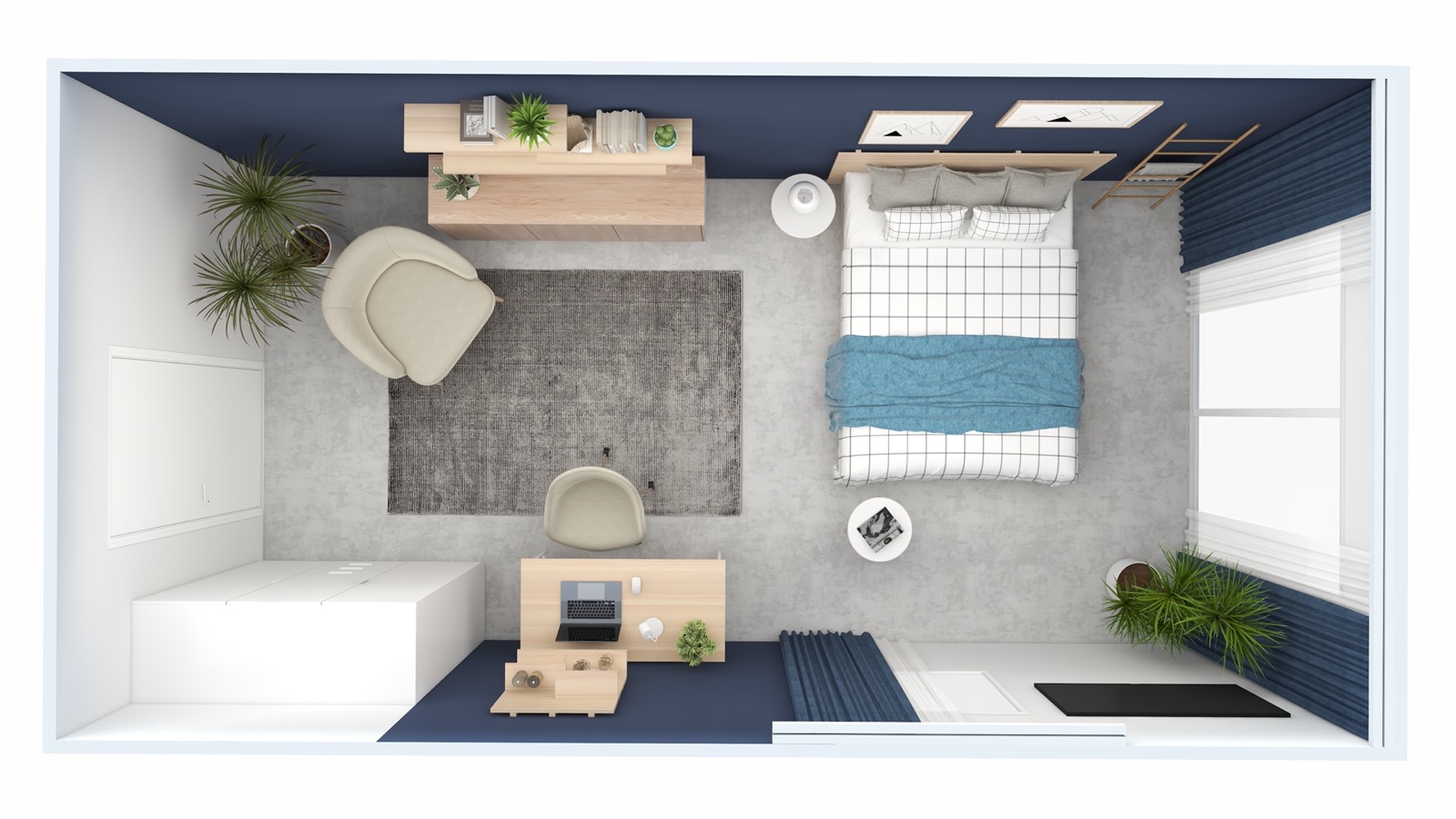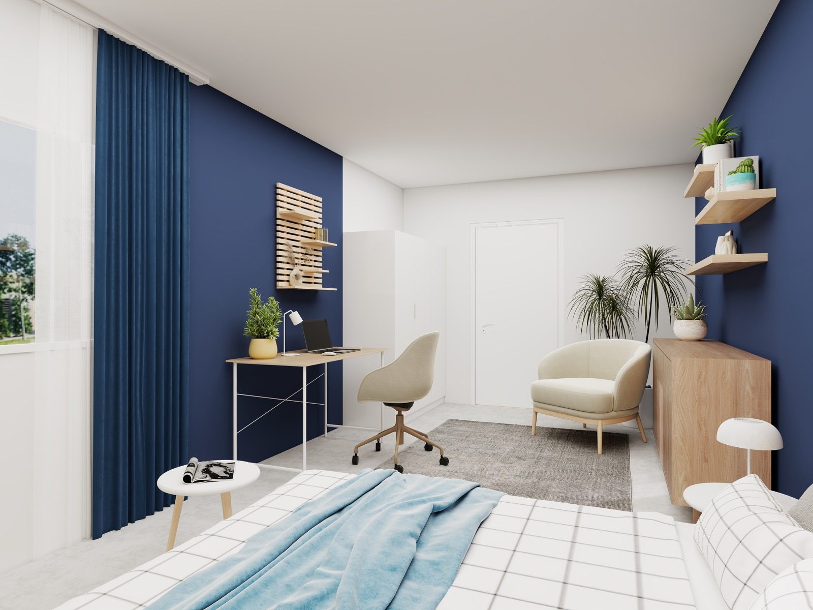 Sodobno zasnovan prostor, ki združuje funkcionalnost, estetiko in mladostno energijo.
