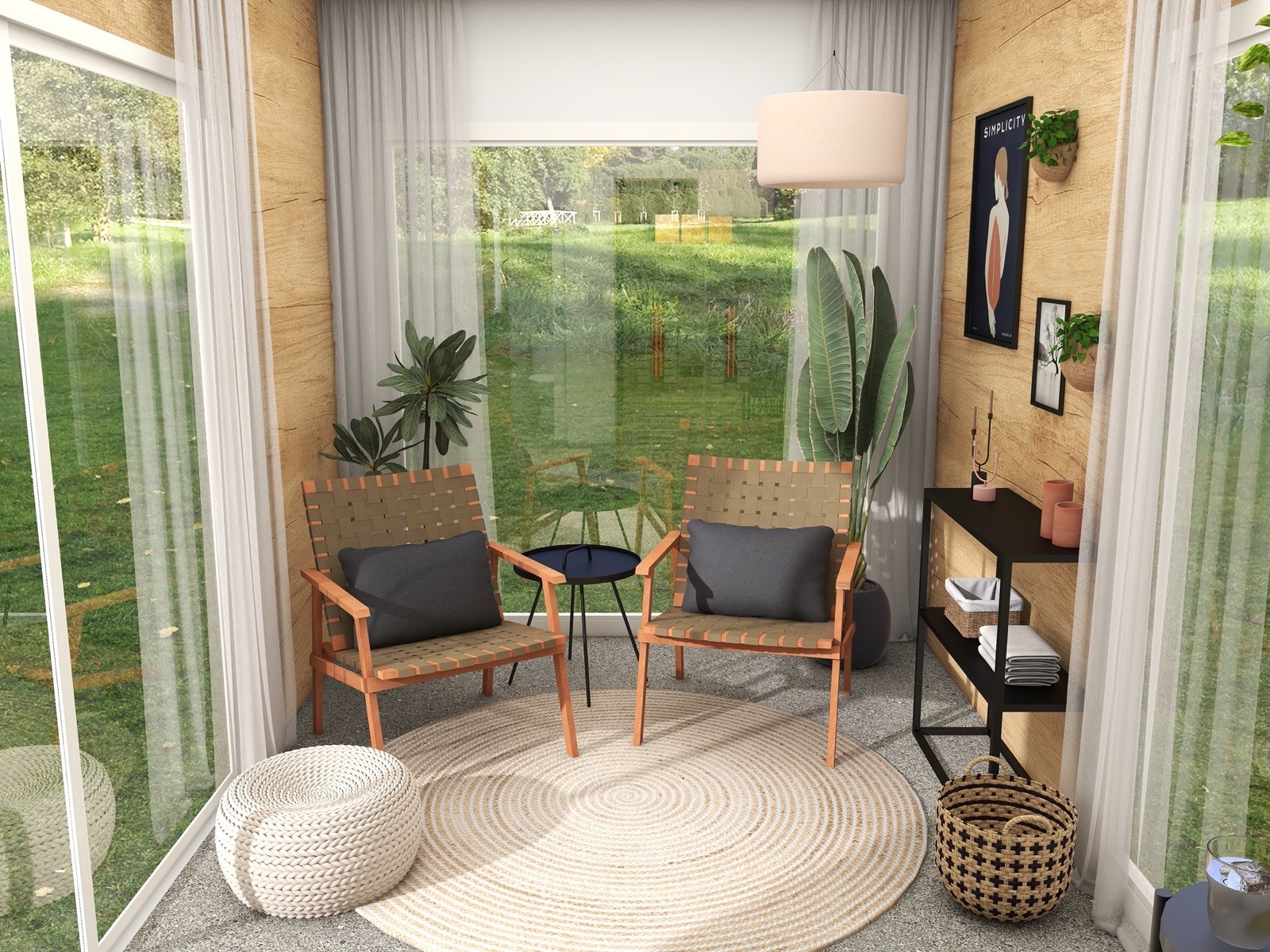 ustvarjajo občutek topline in domačnosti. Prostor omogoča globoko sprostitev, medtem ko udobna počivalnika nudita popolno mesto za počitek in obnovitev energije.