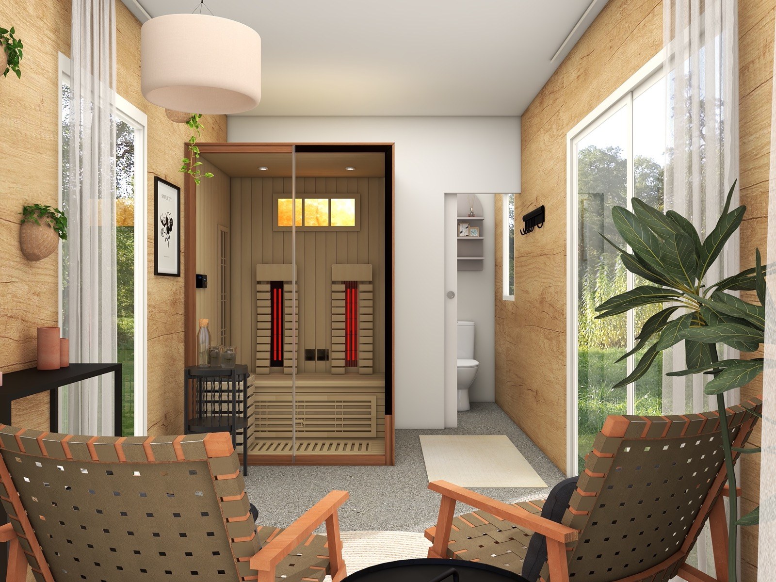 Hosekra Modular wellness Harmony je popoln prostor za sprostitev in pobeg od vsakdanjega stresa. Opremljen s savno, dvema lesenima počivalnikoma za udobno sprostitev, ter kopalnico s tušem,