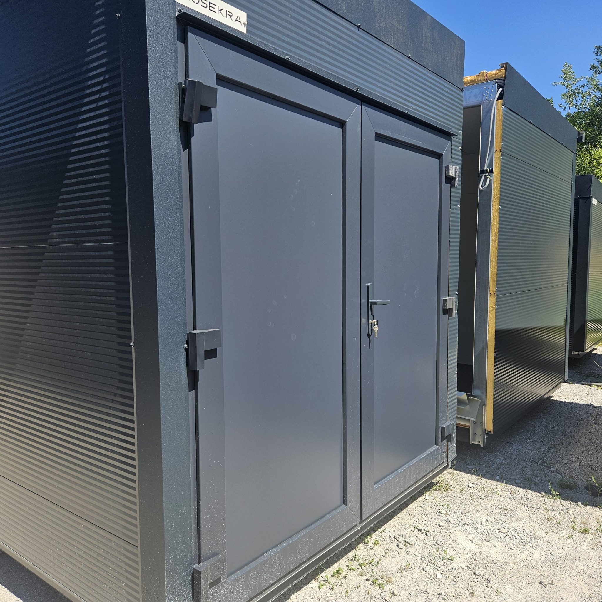 Prostoren in trpežen dvojni skladiščni kontejner skupne površine 32 m² je odlična rešitev za varno shranjevanje orodja, materiala ali opreme. Opremljen je z dvojnimi vrati, ki omogočajo enostaven dostop tudi z večjimi predmeti. Celoten kontejner je v sodobni antracit barvi in izdelan iz odporne konstrukcije, primerne za vse vremenske pogoje. NA VOLJO TAKOJ – za hitro in učinkovito rešitev vaših skladiščnih potreb.