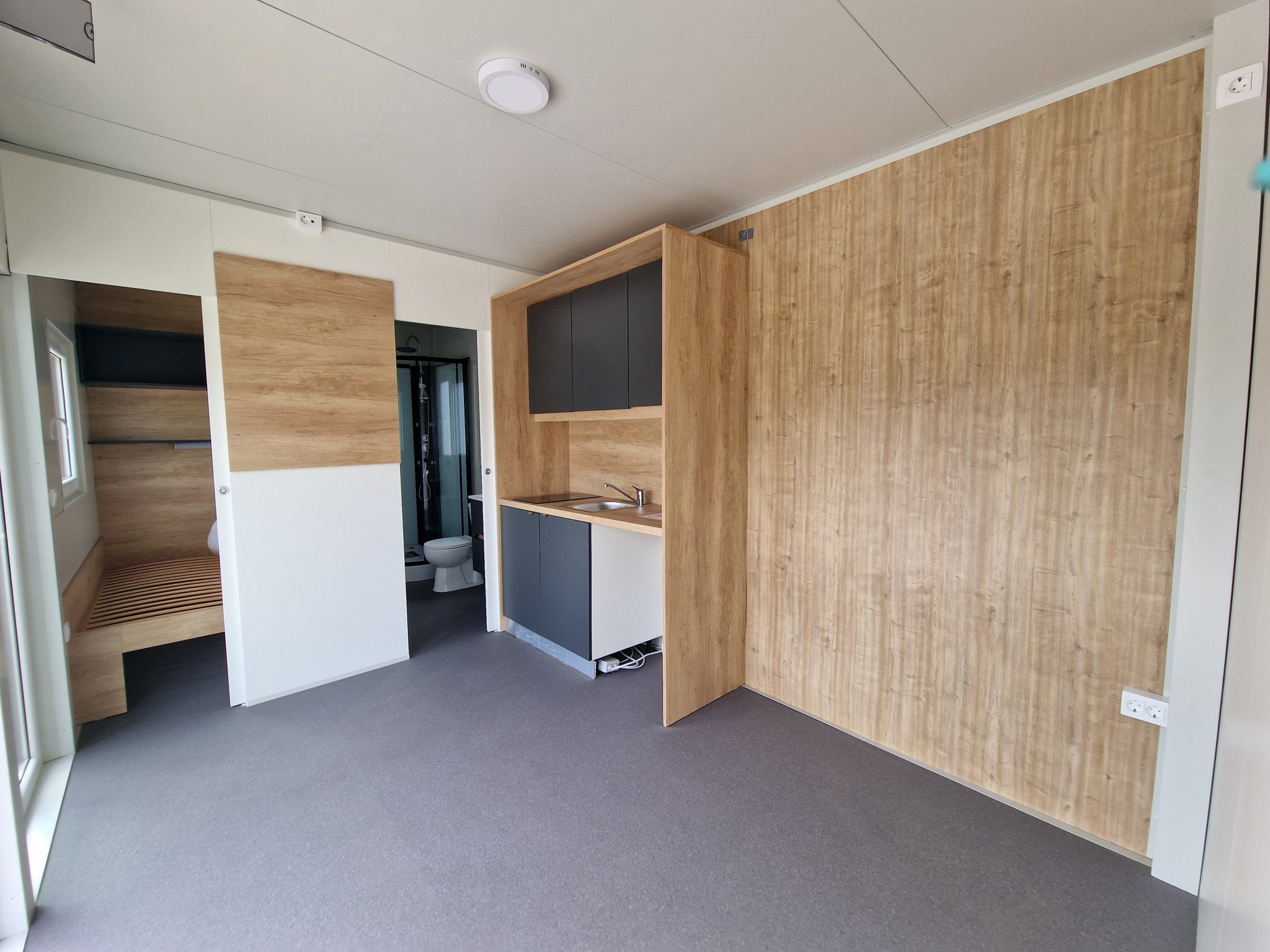 V naši outlet ponudbi je zdaj na voljo mobilna hišica HOSEKRA EKO (3×8 m) s 5% popustom! Dodatno okno v kuhinji, ločene postelje in pripravljene inštalacije za pomivalni stroj – vse to že vključeno!