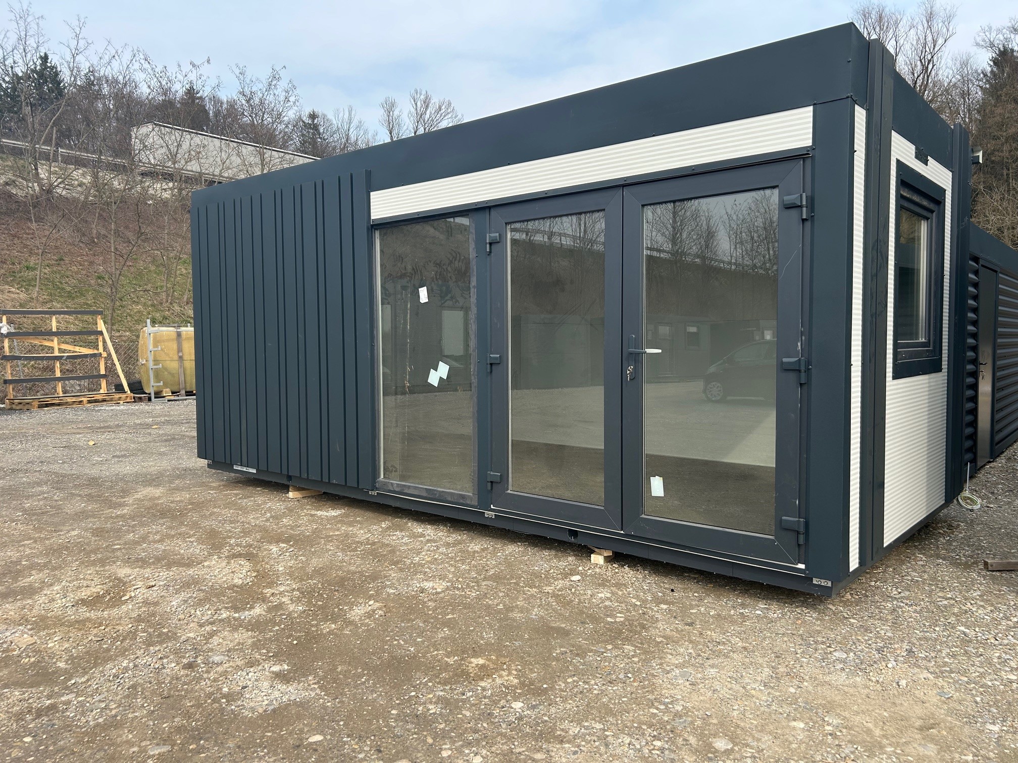 Konstrukcija je izdelana iz kakovostnih materialov, ki zagotavljajo stabilnost, dobro toplotno in zvočno izolacijo ter dolgo življenjsko dobo. Objekt je primeren za pisarno, prodajni prostor, razstavni prostor, recepcijo, začasni bivalni prostor ali drug poslovni namen. Zaradi sodobnega videza in premišljene zasnove predstavlja estetsko dovršeno in praktično rešitev za hitro postavitev funkcionalnega prostora.
