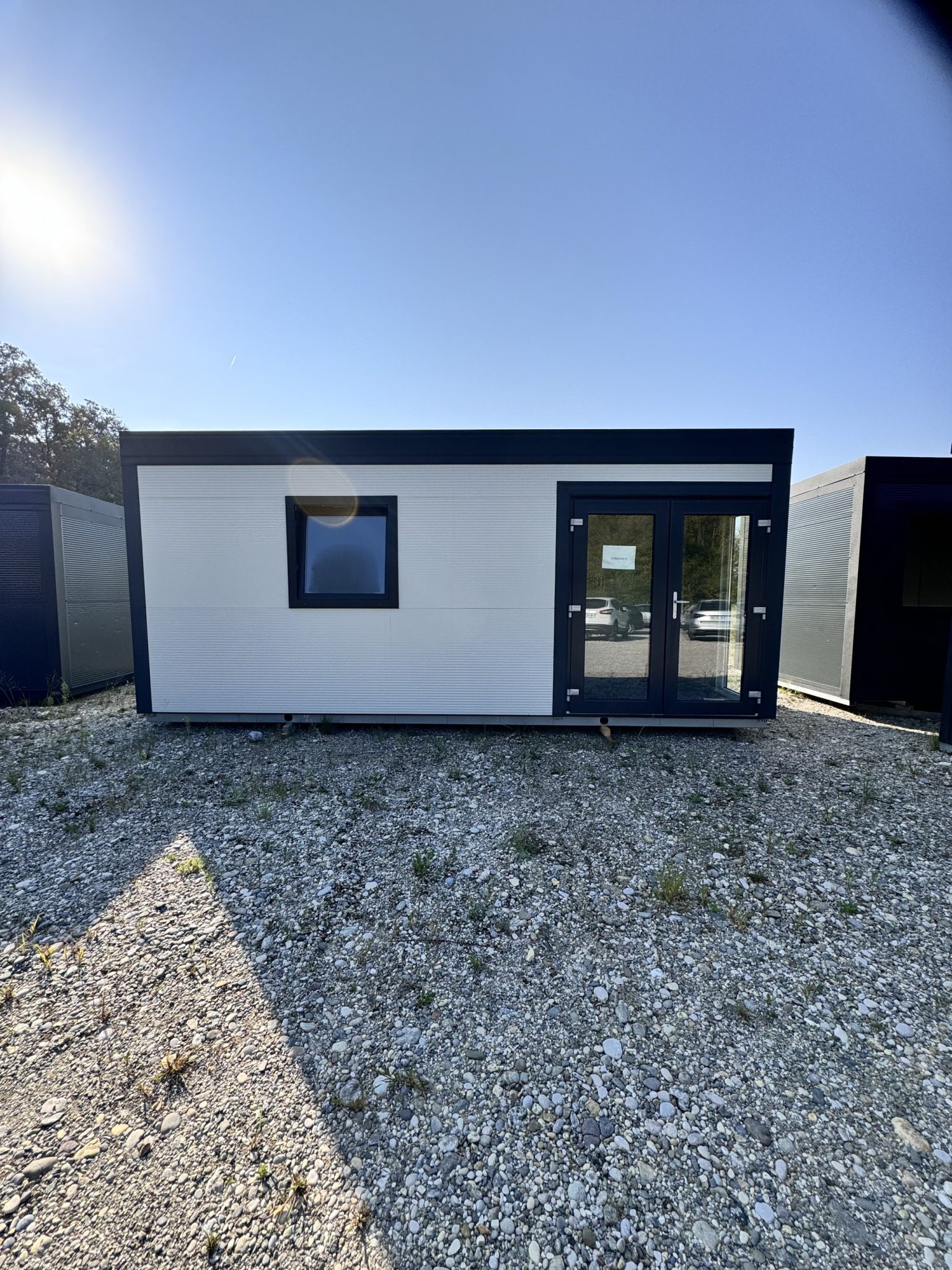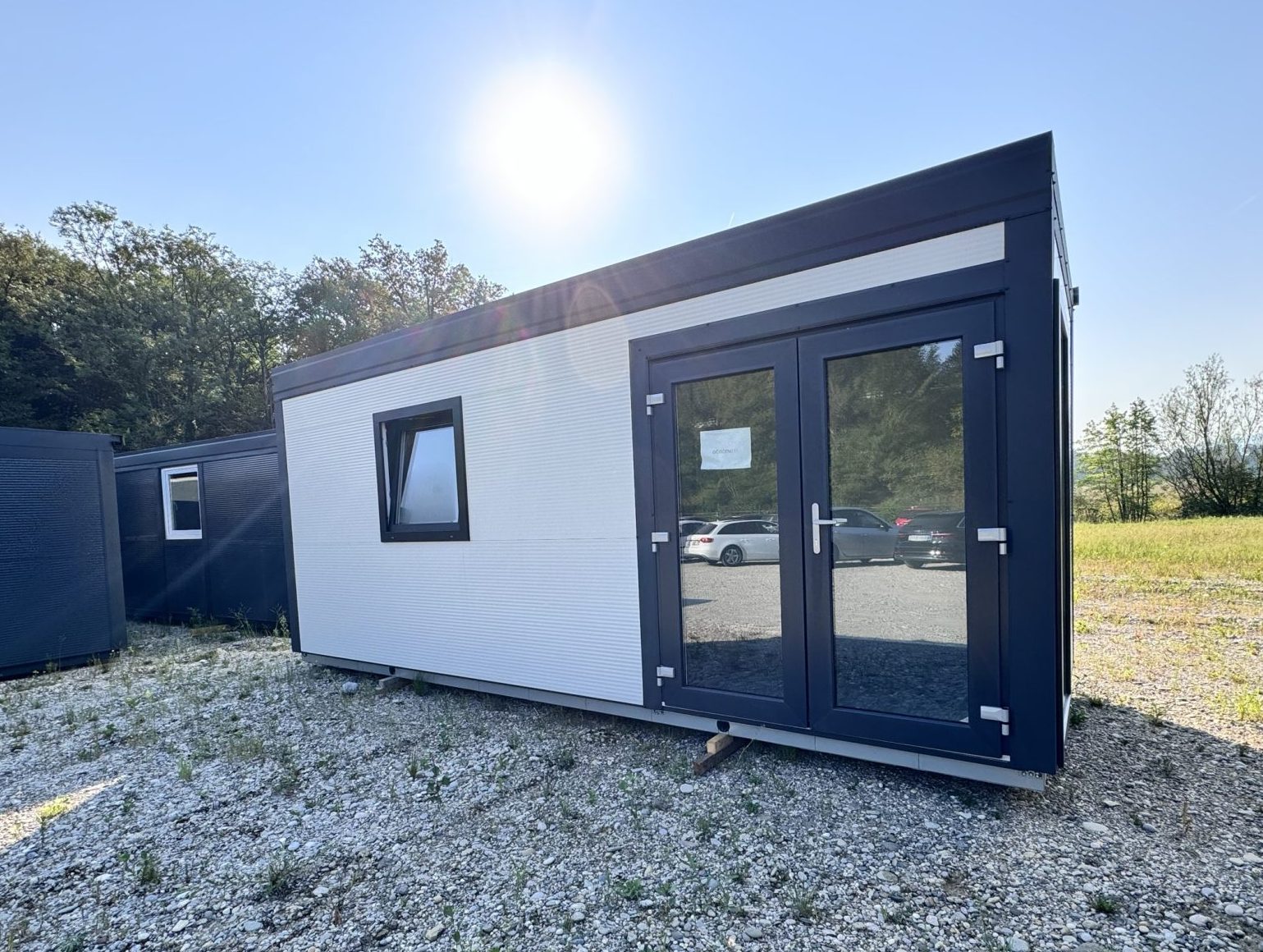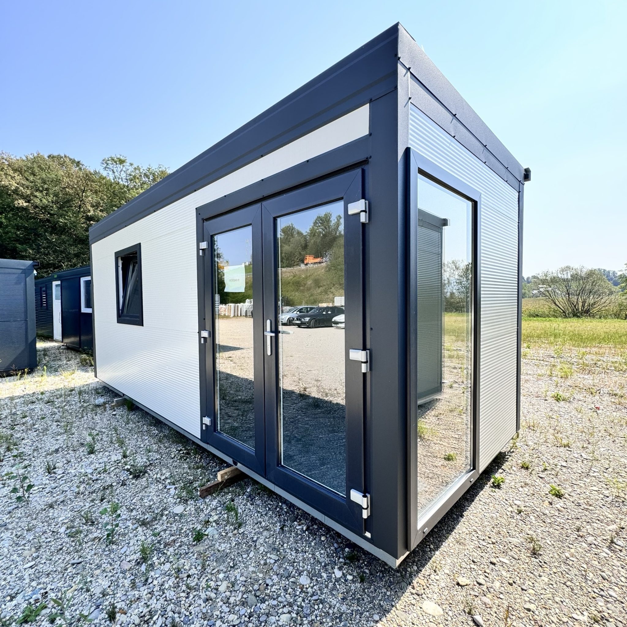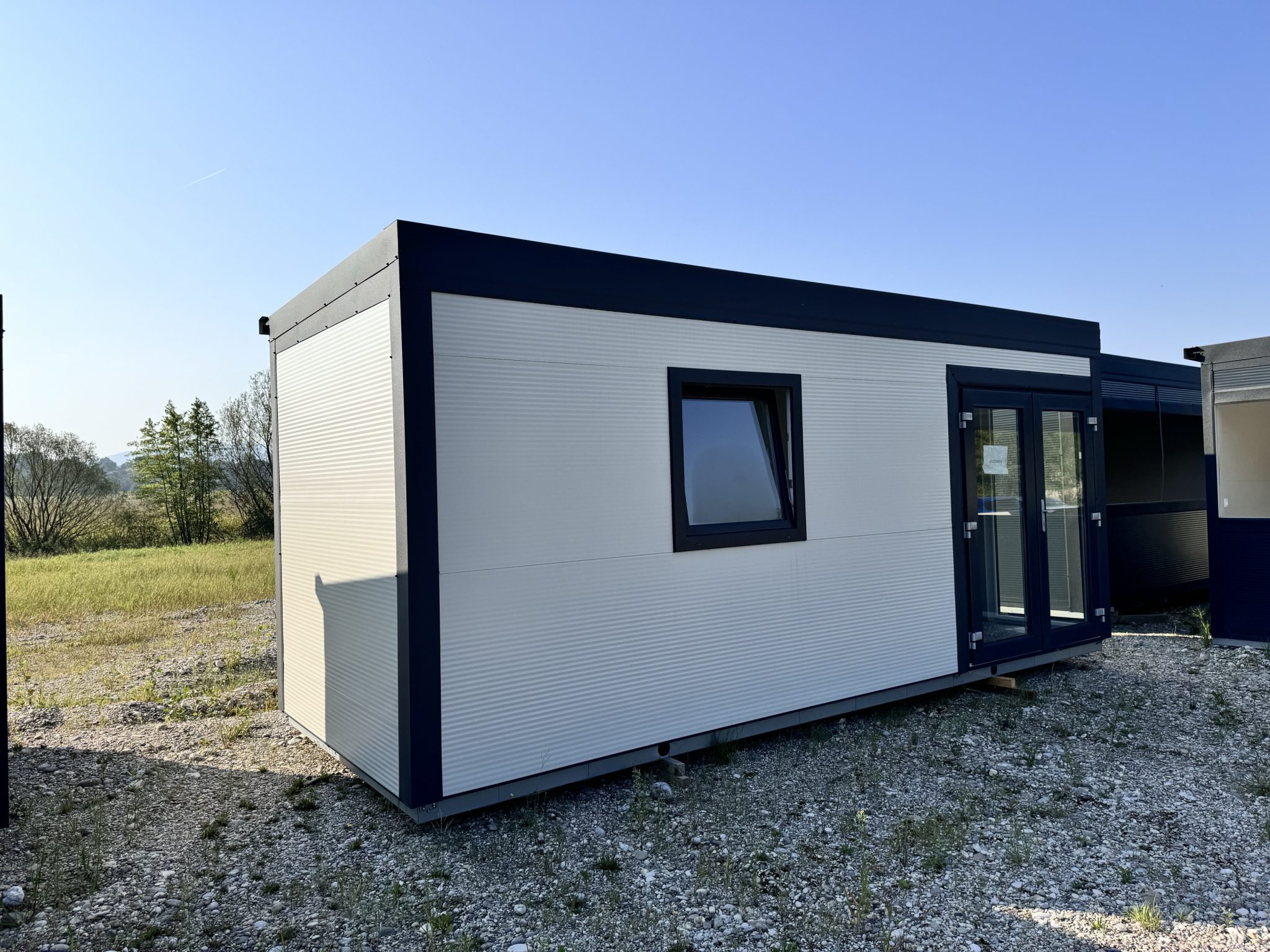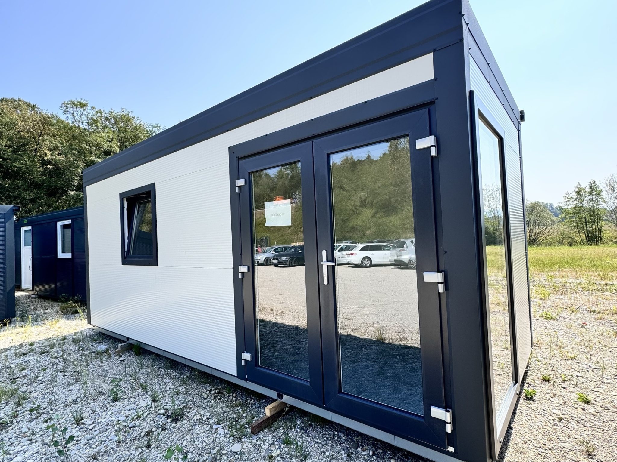 Antracit obrobe, bele barve, x1 okno, dvokrilna vrata, dodatna stranska zasteklitev, komplet izoliran, luč + vtičnica
