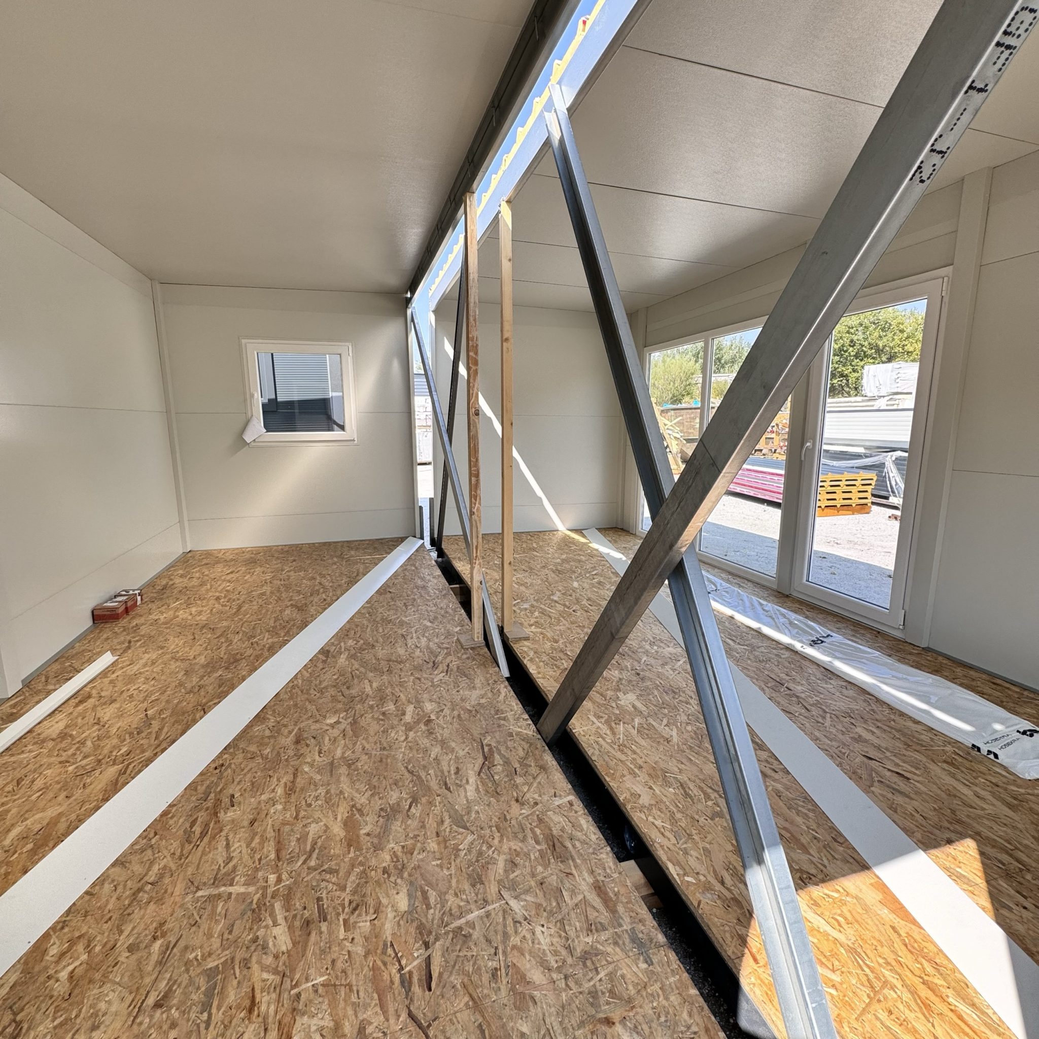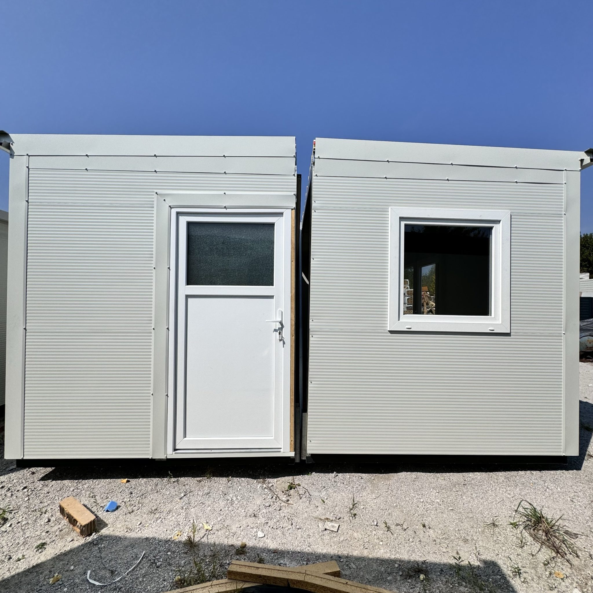 Dvojni kontejner dimenzij 6 x 4,6 x 2,7 metra je odličen za različne namene, kot so večje pisarne, jedilnice ali delavnice. Zasnovan je za hitro prilagoditev notranjosti, kar omogoča enostavno preureditev v prostor, ki najbolje ustreza vašim potrebam. Prednost tega kontejnerja je odlična izolacija, ki omogoča uporabo skozi vse leto, medtem ko vgrajene luči in vtičnice zagotavljajo takojšnjo pripravljenost za uporabo. Zanesljivost, fleksibilnost in enostavna montaža naredijo ta kontejner idealno izbiro za hitre in funkcionalne poslovne prostore.
