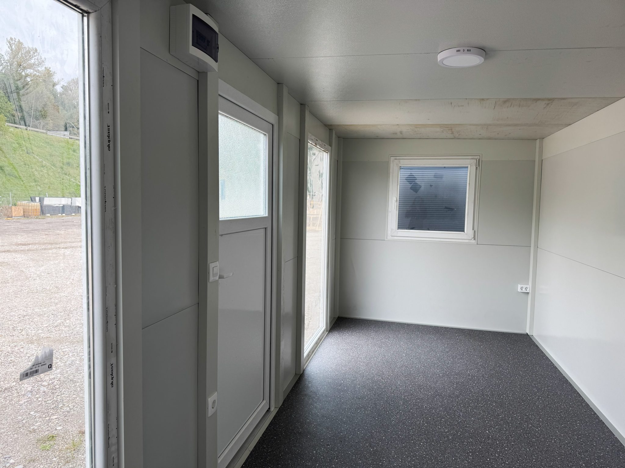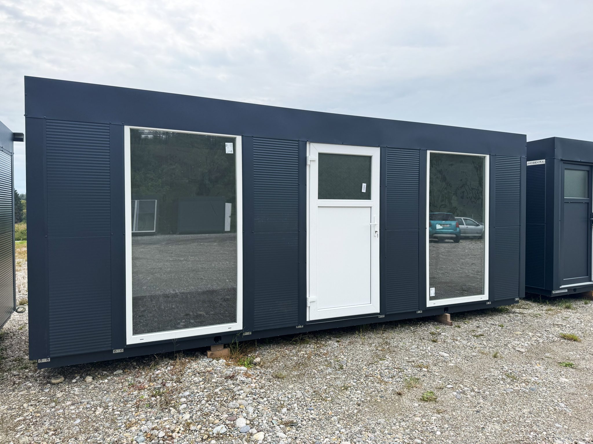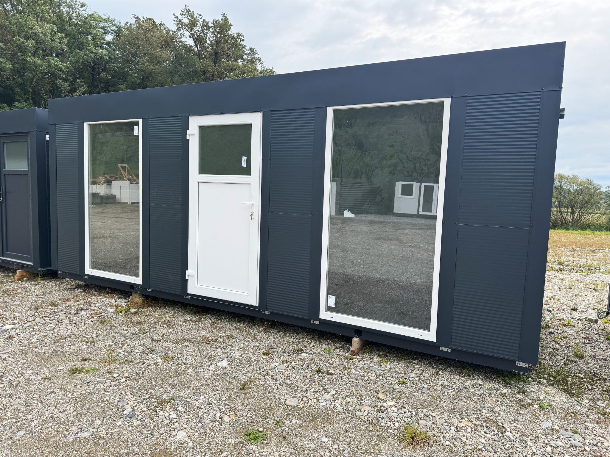 Osnovni kontejner dimenzij 6×2,3 metra, antracit barve. Pisarna je praktična rešitev za različne poslovne in osebne potrebe. Dodano je dvojno večje okno in eno manjše okno. Notranjost je izolirana, kar zagotavlja udobno temperaturo skozi vse leto. Poleg tega je opremljen z lučjo in vtičnico, kar omogoča takojšnjo uporabo za osnovne električne naprave.