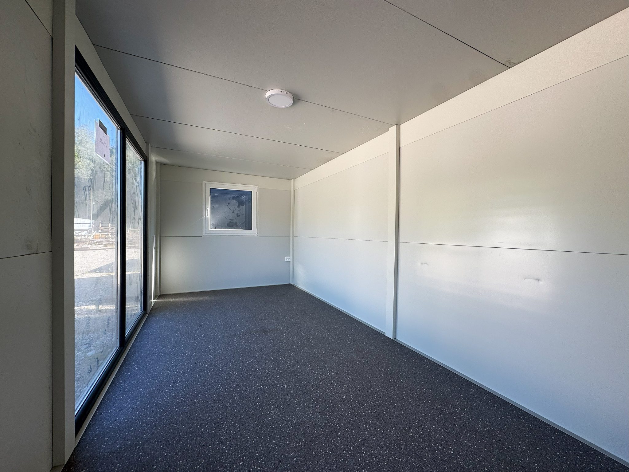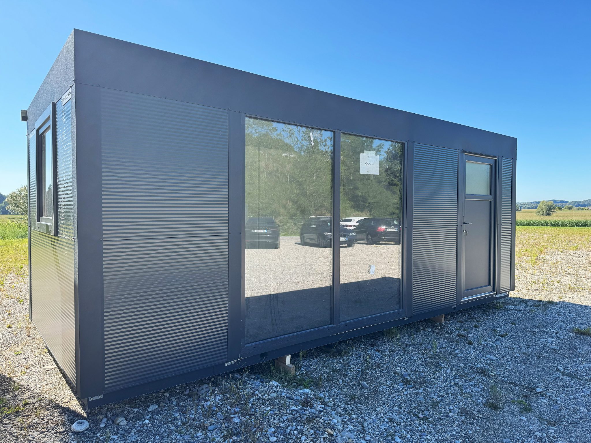 Osnovni kontejner dimenzij 6×2,5 metra v antracitni barvi. Primeren za pisarno zaradi velikega panoramskega okna.