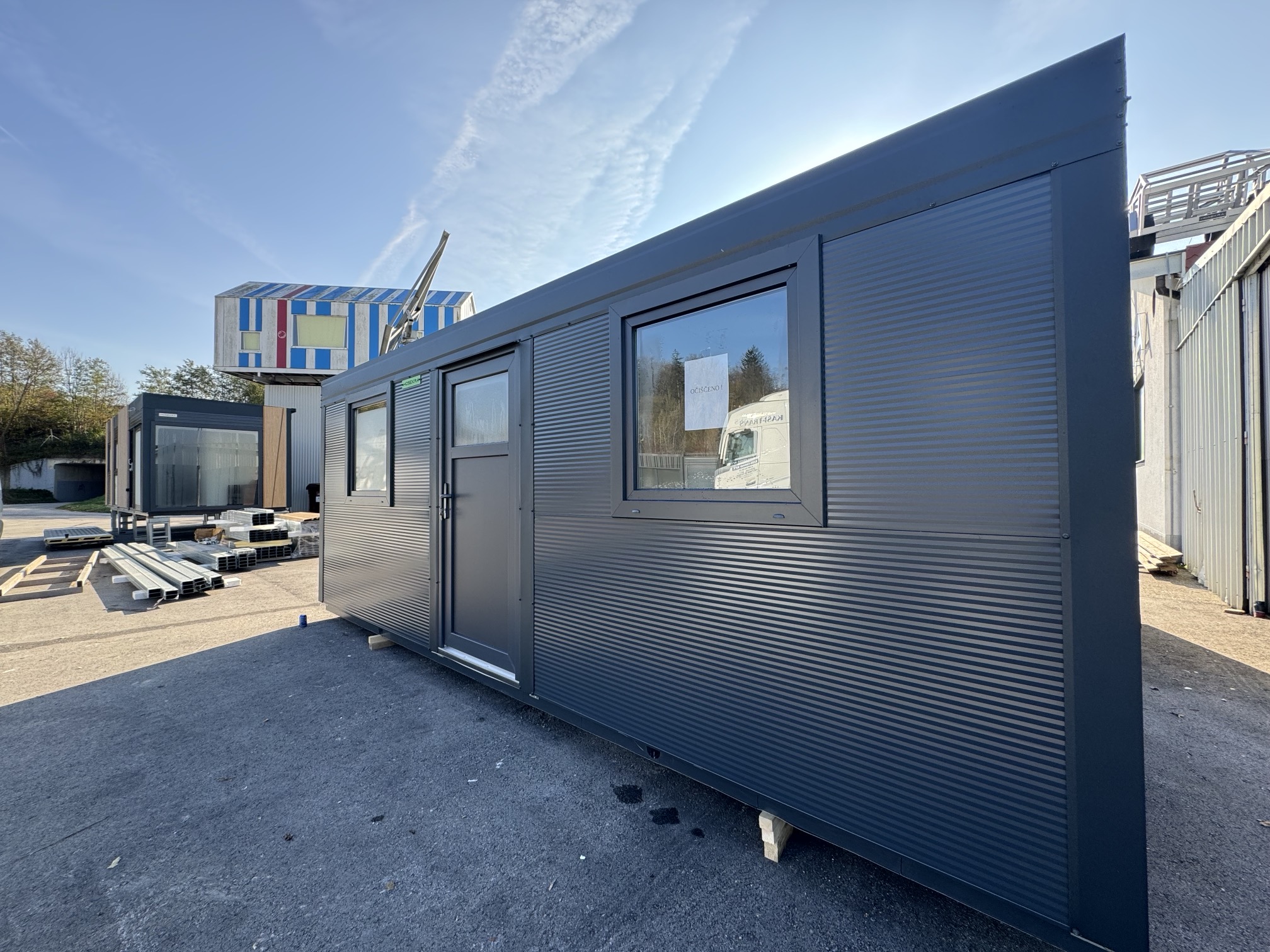 Kontejner v antracit sivi barvi, dimenzij 6 x 2,3 metra, je zasnovan za fleksibilne in funkcionalne prostore. Zasnova vključuje dvojno okno in vrata, kar omogoča enostaven dostop in dobro osvetlitev notranjosti. Ta kontejner je primeren za številne uporabe, kot so pisarne, skladišča ali začasni prostori za različne dejavnosti. Prednost tega kontejnerja je njegova elegantna in moderna barva antracit, ki se lepo vklopi v različne okoljske nastavitve, hkrati pa zagotavlja praktičnost in estetski videz.