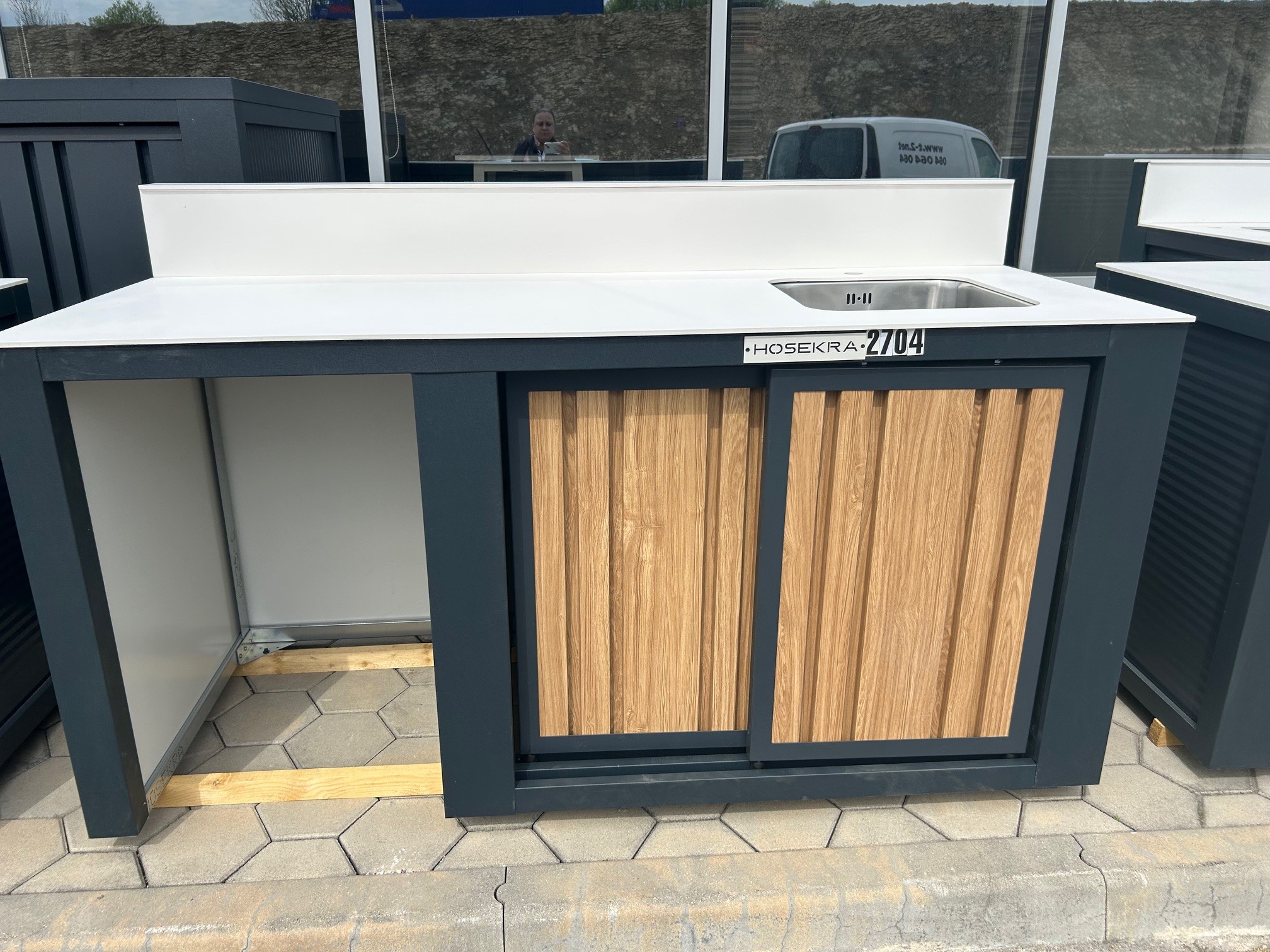 Hosekrina zunanja kuhinja je zasnovana za brezskrbno uporabo na prostem, saj so vsi sestavni deli izjemno trpežni in odporni na vremenske vplive.