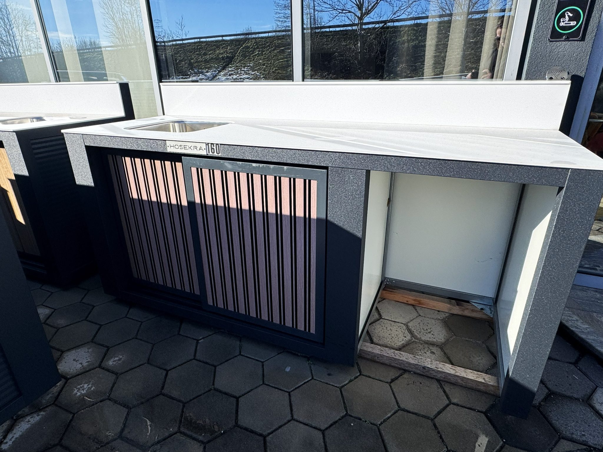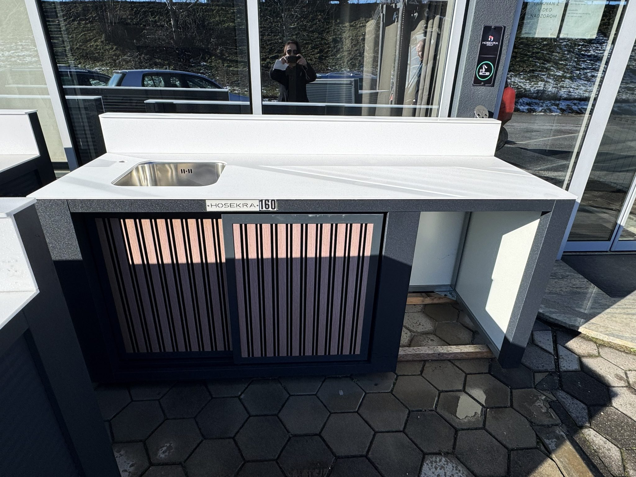 Hosekrina zunanja kuhinja je zasnovana za brezskrbno uporabo na prostem, saj so vsi sestavni deli izjemno trpežni in odporni na vremenske vplive.