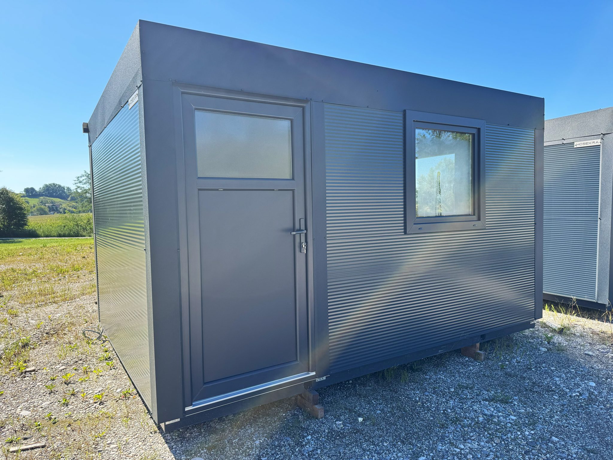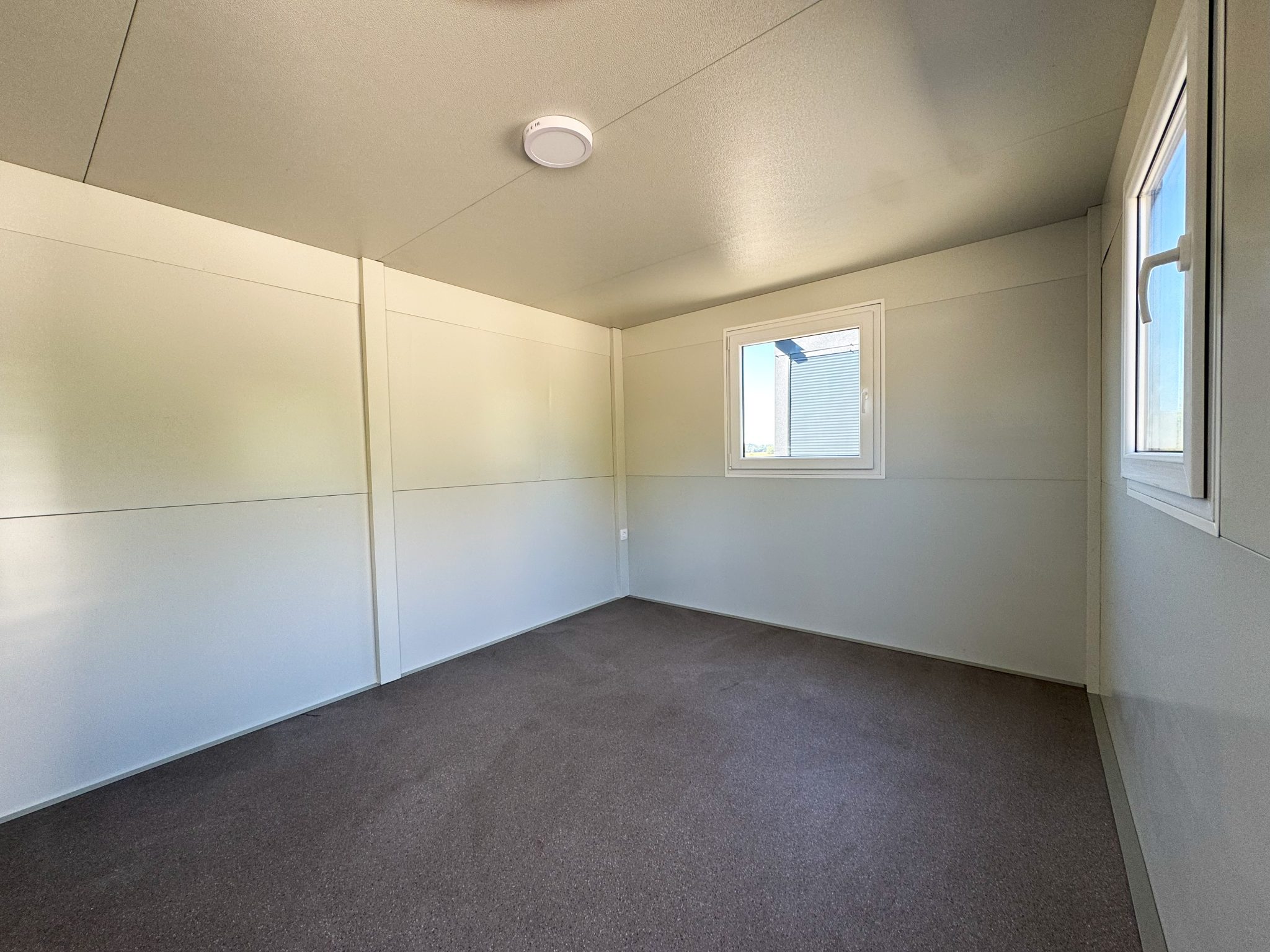 Osnovni kontejner dimenzij 4×3 metra je enostaven in funkcionalen prostor, ki je popolnoma izoliran, kar zagotavlja udobno temperaturo v vseh letnih časih. Zasnovan je v beli barvi in opremljen z antracitnim oknom ter preklopnimi vrati za enostaven dostop. V notranjosti so že nameščeni luč in vtičnica, kar omogoča takojšnjo uporabo za osnovne električne potrebe. Ta kontejner je odlična izbira za podjetja, ki iščejo preprost, a kakovosten prostor za različne potrebe, bodisi kot pisarno bodisi za shranjevanje, s prednostjo, da je pripravljen za takojšnjo uporabo.