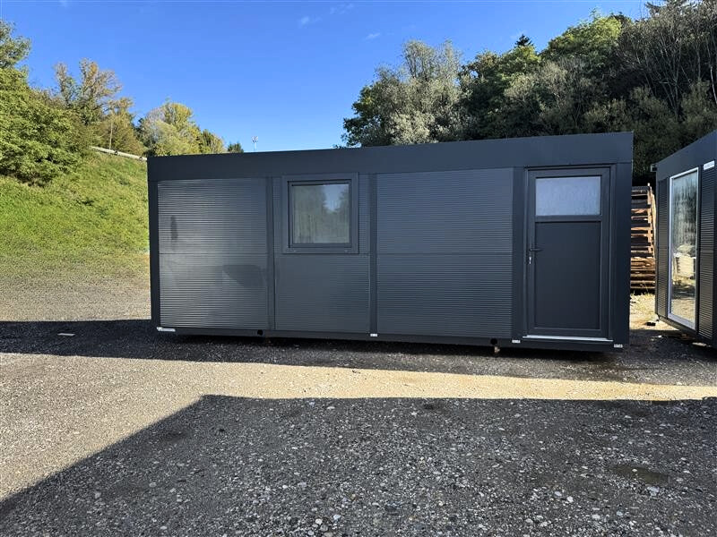 Osnovni kontejner dimenzij 6×2,3 metra v antracitni barvi je praktična rešitev za različne poslovne in osebne potrebe. Zasnovan je z enim oknom in vrati, ki omogočajo enostaven dostop in naravno osvetlitev. Notranjost je izolirana, kar zagotavlja udobno temperaturo skozi vse leto. Poleg tega je opremljen z lučjo in vtičnico, kar omogoča takojšnjo uporabo za osnovne električne naprave.