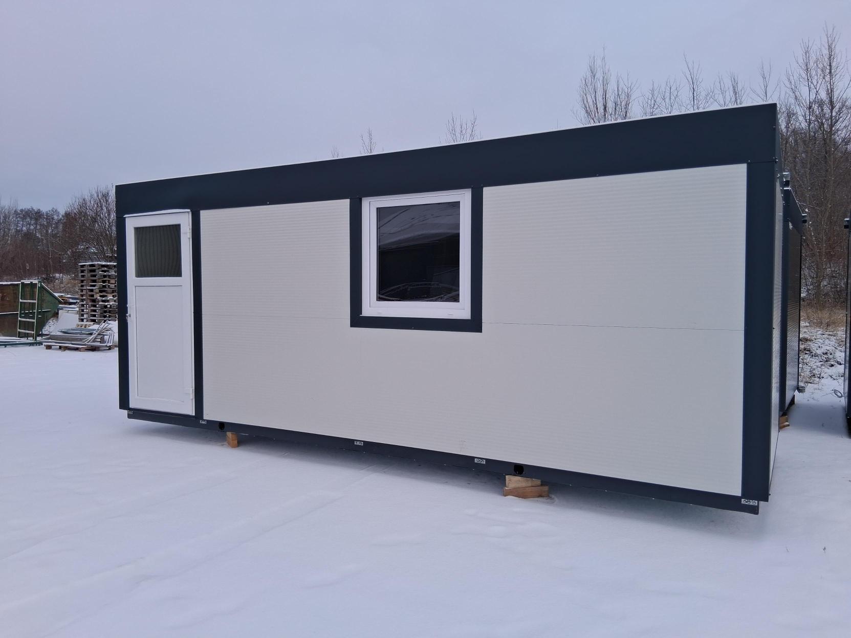 Osnovni kontejner dimenzij 6×2,3 metra je enostaven in funkcionalen prostor, ki je popolnoma izoliran, kar zagotavlja udobno temperaturo v vseh letnih časih. Zasnovan je v beli barvi in opremljen z antracitnim oknom ter preklopnimi vrati za enostaven dostop. V notranjosti so že nameščeni luč in vtičnica, kar omogoča takojšnjo uporabo za osnovne električne potrebe. Ta kontejner je odlična izbira za podjetja, ki iščejo preprost, a kakovosten prostor za različne potrebe, bodisi kot pisarno bodisi za shranjevanje, s prednostjo, da je pripravljen za takojšnjo uporabo.